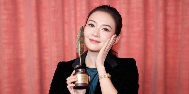 章子怡回应获奖,手捧奖杯笑容灿烂