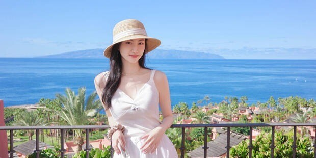 景甜晒海边白色吊带裙美照 气质清新靓丽超养眼